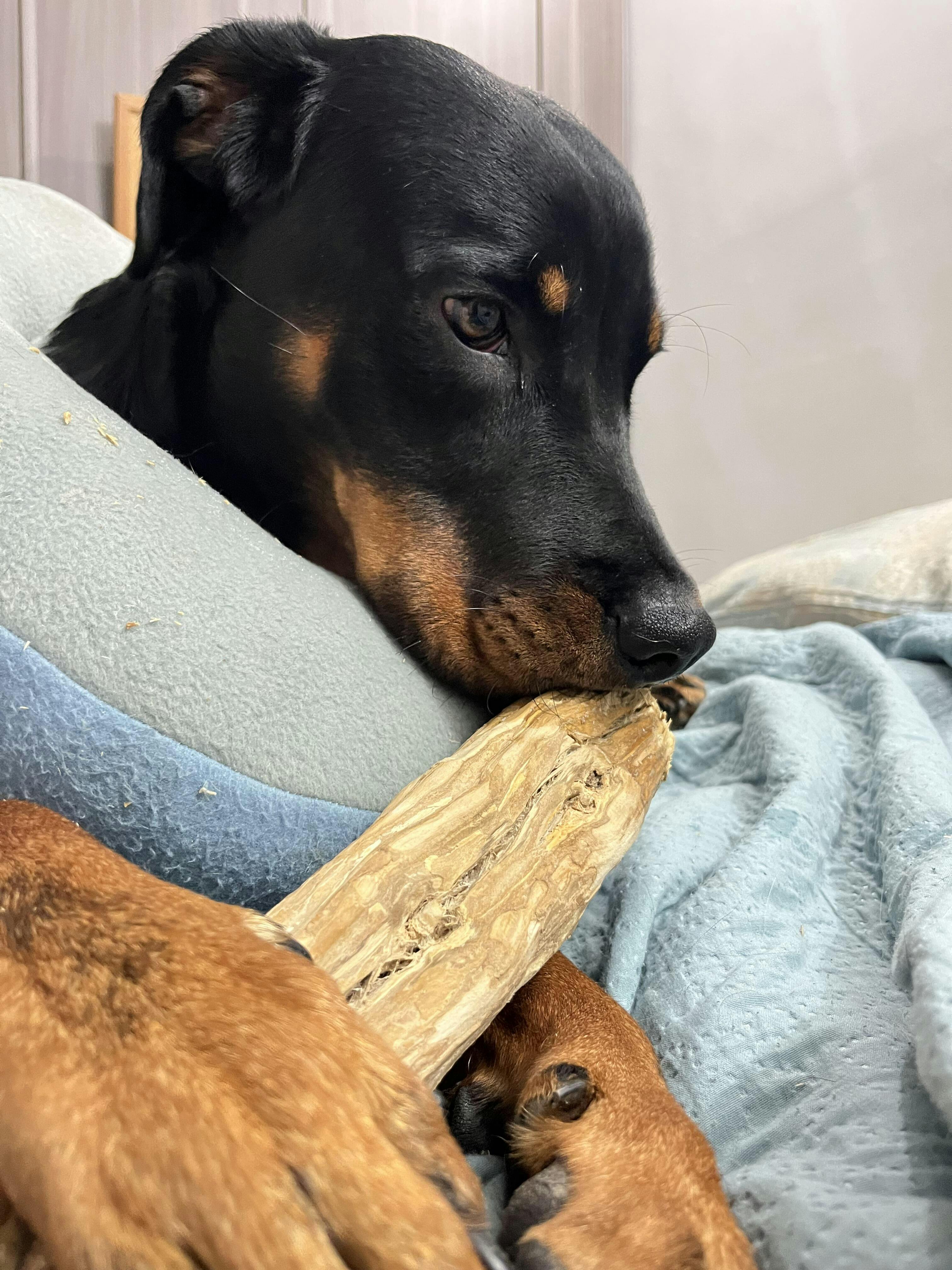 Combo por 3 juguetes en madera de árbol de café para perro.